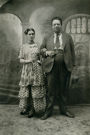 Frida Kahlo and Diego Rivera on their wedding day (August 21, 1929)